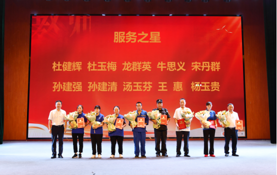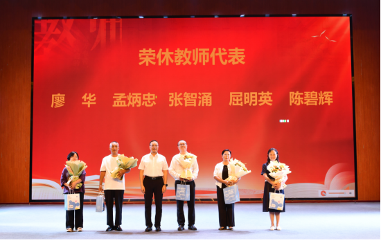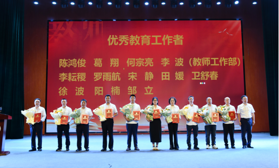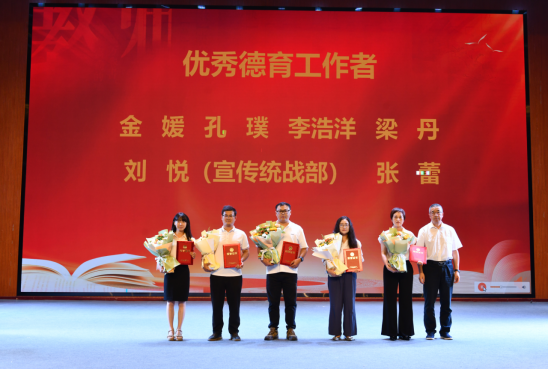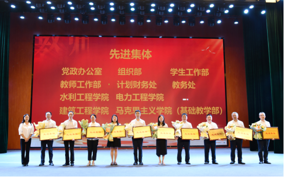 会上,举行荣休仪式和新教师入职宣誓仪式;表彰“先进集体”10个、“教学名师”“师德标兵”“优秀教师”“优秀德育工作者”“思政课教师年度人物”“辅导员年度人物”“优秀辅导员”“优秀教育工作者”“服务之星”等先进个人74人;表扬在教学科研等领域取得突出成果的教师代表29人;荣休教师代表张智涌、教师代表赵楠、学生代表金方林、新入职教师代表王涛分别发言。
