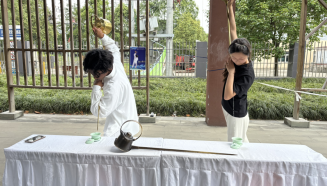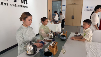 泰籍留学生孔天博熟练地展示了长嘴壶表演,并用简单的语言、耐心地指导教小朋友和家长们体验长嘴壶表演招式,感受长嘴壶文化的魅力。吉尔吉斯斯坦籍留学生林若兰、贝娜用今年新茶为小朋友和家长们冲泡了盖碗茶,并与小朋友们一起体验盖碗茶冲泡过程中的礼仪文化。